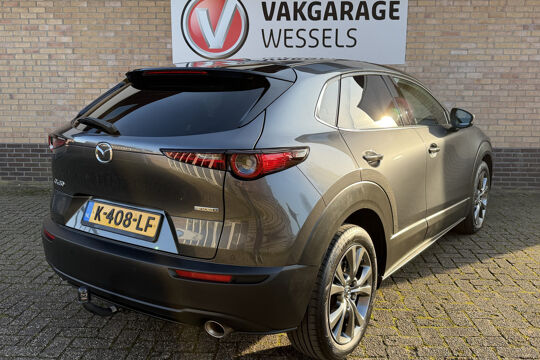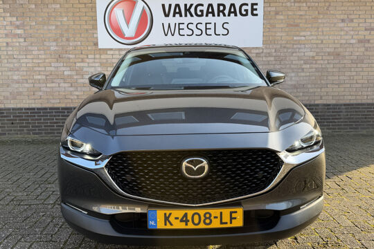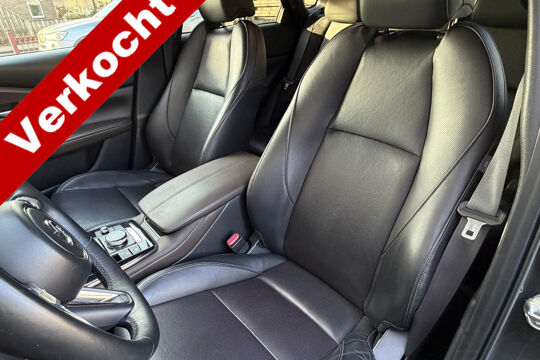 Hij toont aantrekkelijk en tegelijk onverzettelijk. Met deze stoere Mazda bent u onder alle omstandigheden veilig onderweg. Dit is een Mazda CX-30 van het bouwjaar 2021, er staat 85472 kilometer op de teller. De aandrijving van deze Mazda komt voor rekening van een viercilinder benzinemotor en een handgeschakelde zesversnellingsbak. En wat heeft deze auto nog meer in petto? Om te beginnen zien we het lederen interieur, dat een sfeer van luxe meebrengt. Maar als u gaat voor gemak, wordt u ook niet teleurgesteld. Kijk eens naar die elektrisch bedienbare achterklep! 's Winters komen de verwarmbare voorstoelen heerlijk van pas. Tot de uitrusting behoren ook 18 inch lichtmetalen velgen, LED koplampen, dakspoiler, donker getint glas achter, in delen neerklapbare achterbank en LED-achterlichten.